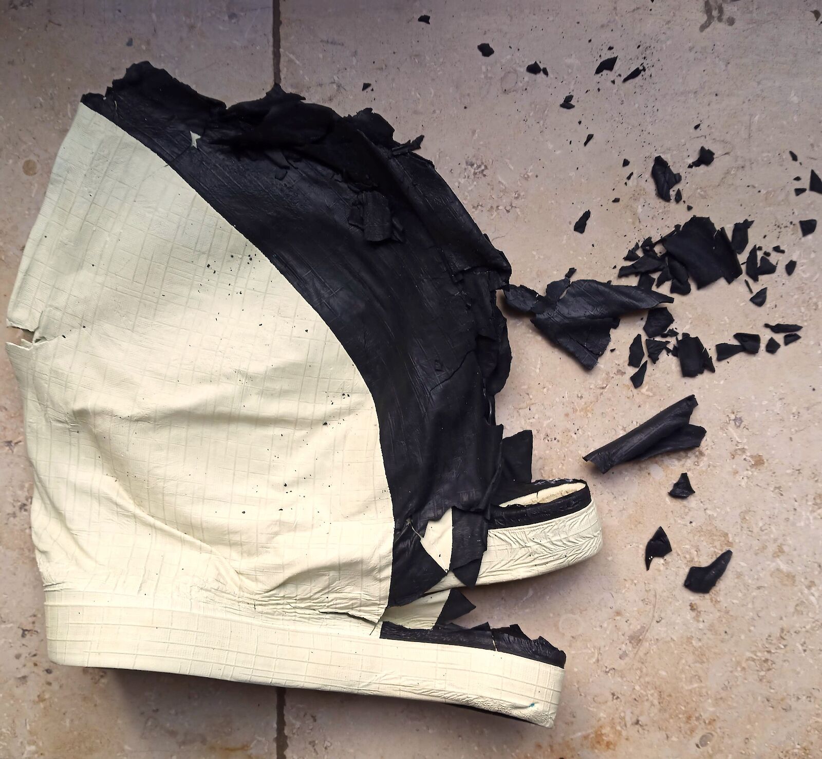 Beim Durchforsten meines Elternhauses stieß ich auf meine alte Badekappe aus den 1960ern. Kunststoffstabilisierer und Weichmacher haben offensichtlich das Gebäude verlassen. So sah sie vor 15 Jahren noch aus